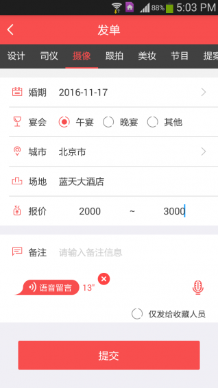 1功能強大:秒級發(fā)單、秒級接單,價格透明,訂單列表一目了然;2海量數(shù)據(jù):有國內最全的婚慶行業(yè)數(shù)據(jù),上萬家婚慶公司、上萬名婚禮人;