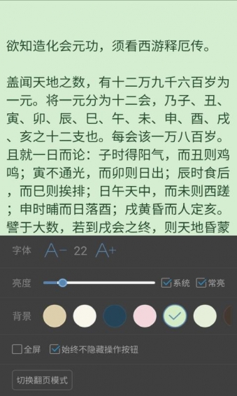 2,閱讀界面增加自定義閱讀背景和字體顏色的設(shè)置。