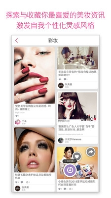 3、從ELLE、MarieClaire、伊周,OR達人頻道中搜尋自己中意的造型設(shè)計打造自我個性妝感,并與其他美容愛好者分享