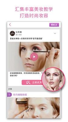 4、從化妝沙龍里找到自己喜愛的妝面,試玩它獵取你喜愛的潮流媒體資訊