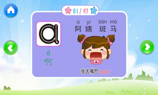 兒童教育,寶寶學(xué)漢語拼音字母,幼兒啟蒙,親子教育,智力開發(fā),通過圖文和聲音想結(jié)合的方式生動形象的向?qū)殞毺峁W(xué)習(xí)資源。并且通過考試游戲和記憶游戲的模式增加學(xué)習(xí)的娛樂。達到事半功倍的學(xué)習(xí)效果。