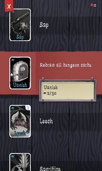 卡牌潛行者破解版(Card Crawl)是一款制作精良的桌游卡牌類益智休閑游戲??ㄅ茲撔姓咂平獍嬗螒蛑型婕倚枰c坐在自己面前怪物進行卡牌對決,每回合都能抽5次,由于獲得的卡片技能效果各有不同,因此只有合理搭配才能順利過關(guān)喲!【游戲玩法】