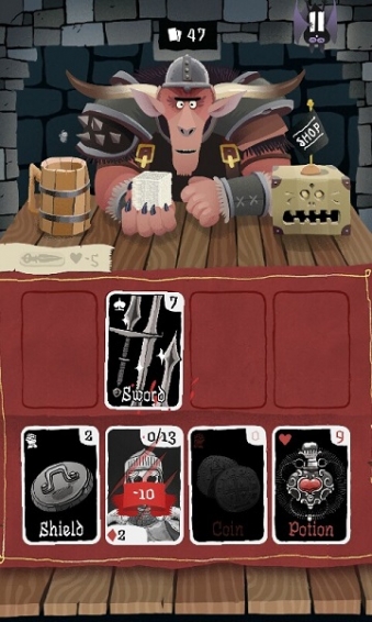 游戲當中的卡牌主要分為道具類、武器類、功能類、怪物類。其中道具類可以幫助玩家恢復血量,武器類則可以放置在手持區(qū)當中拖動之后即可進行攻擊,也有盾牌類的卡牌可以幫助玩家抵御一定數(shù)額的攻擊,而功能類卡牌每一張都都有其專屬的功能,善于利用它們可以在轉(zhuǎn)瞬間改變場上的局勢。值得注意的是,游戲當中怪物卡牌并不會主動進行攻擊,玩家需要拖動他們對自己進行攻擊,玩家可以讓它們攻擊防具來減少自身所受到的傷害。