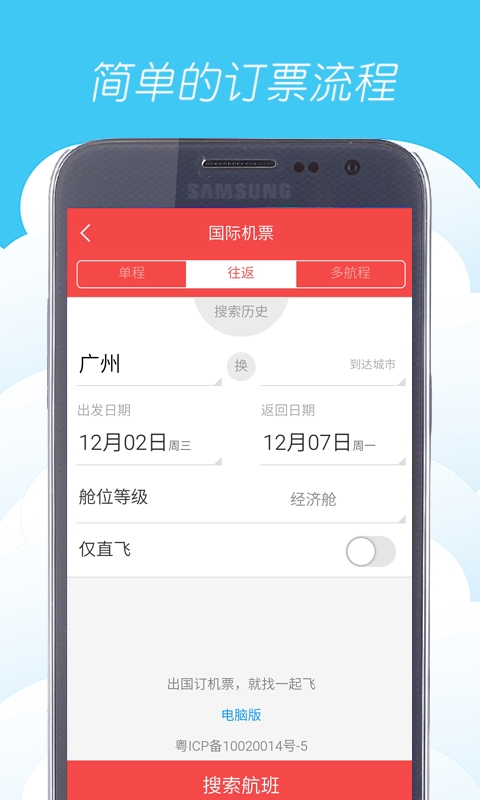 一起飛app,國(guó)內(nèi)領(lǐng)先的機(jī)票服務(wù)應(yīng)用。一起飛app提供全球機(jī)票預(yù)訂服務(wù),包含近200個(gè)國(guó)家和快五千座城市,機(jī)票酒店簽證一站式服務(wù),讓您國(guó)際旅行更省心。【功能說明】