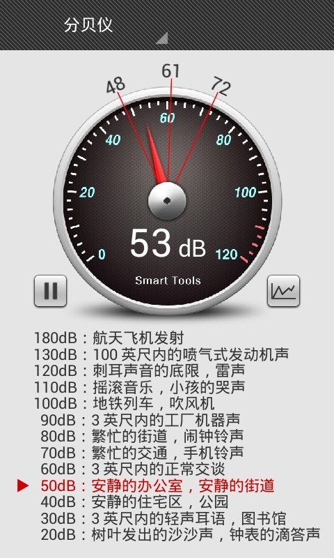 分貝儀app是一款非常好用的噪音檢測軟件,它利用手機麥克風(fēng)來測量環(huán)境中的噪聲大小,并且測試后將顯示一個分貝大小表供用戶參考,當(dāng)環(huán)境中的分貝值過高,會對人的心理及生理產(chǎn)生危害,為了家人的身心健康,趕快檢測一下身邊的分貝值吧!