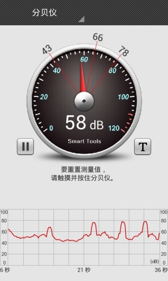 隨時隨地檢測環(huán)境分貝! 一款利用手機麥克風(fēng)來測量環(huán)境噪聲、分貝(dB)大小的軟件,測試后將顯示一個數(shù)值供參考。通過這款小工具,你就能夠輕松的測量出當(dāng)前環(huán)境的噪聲水平,操作簡單、使用方便。當(dāng)周圍環(huán)境的分貝值過高,會對人的心理及生理產(chǎn)生危害,噪音對聽力功能也會有損。所以最好不要長時間暴露在這樣的噪聲之下。為了您和家人的身心健康,趕快檢測一下您周圍的噪音分貝值吧!