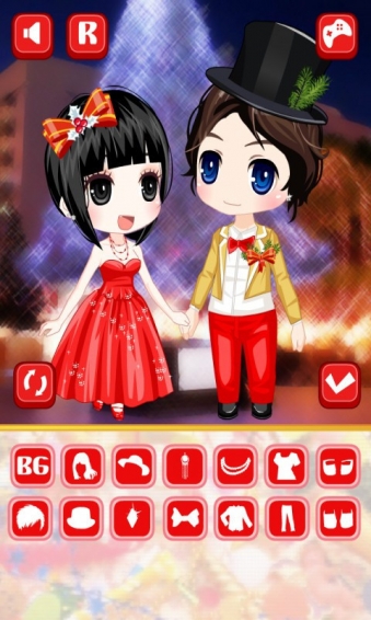 情侶圣誕舞會換裝是一款玩法非常簡單的休閑游戲,玩家需要幫助一對情侶在舞會前選好自己的裝飾,點(diǎn)擊裝束的圖標(biāo)便可換裝,按R可以重置,努力讓他們能帥氣美麗的出席晚會吧。