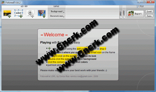 FotoWall是一個圖像處理工具。可以添加圖片然后調(diào)整移動,更改顏色文字陰影等。