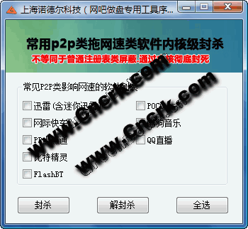 諾德爾推出的P2P類拖網(wǎng)速軟件內(nèi)核級封殺工具