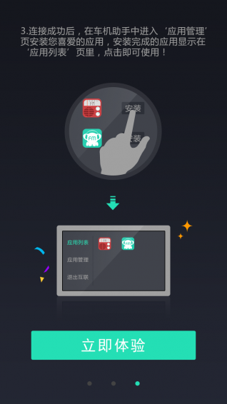 在汽車屏幕上更方便的使用手機中奇瑞合作的第三方應用(如:蜻蜓FM、考拉FM等,持續(xù)增加中);將用戶自行安裝的手機應用界面鏡像到車載終端屏幕上顯示,并可直接在車載終端屏幕上操作;