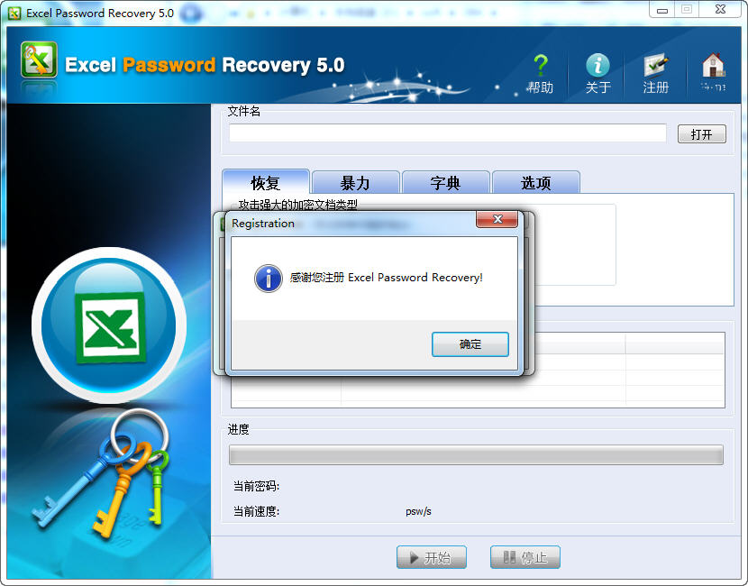 Excel Password Recovery是專為恢復(fù)丟失的 Microsoft Excel 密碼設(shè)計的一個易于使用的工具。Excel密碼恢復(fù)軟件可以在短短的幾秒鐘恢復(fù)密碼!對于密碼的打開方式,Excel Password Recovery提供了三種不同的搜索方法:高級字典破解,暴力破解,以及高級強力使用面具攻擊。從97到2007的Excel版本都支持!