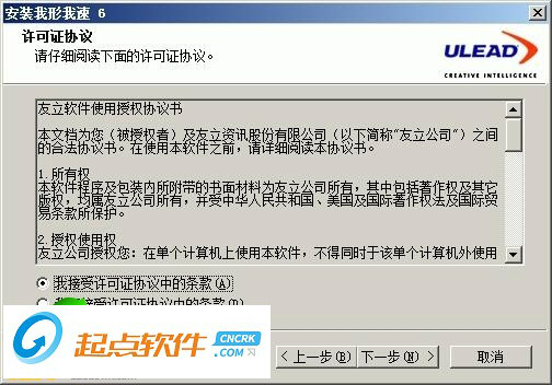 2、我們點擊下一步出現(xiàn)軟件的許可證協(xié)議,選擇我接受許可協(xié)議中的條款繼續(xù)下一步,不接受則點擊取消退出安裝