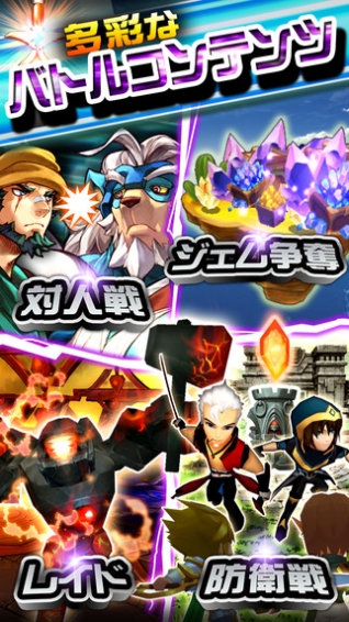 除此了通常任務(wù)之外,還可以與其他玩家進(jìn)行每天戰(zhàn)斗的“アリーナ”,與其他玩家一起搶奪資源的“資源発掘”,可以測(cè)試自己角色能力的“ロイヤルタワー”,與其他玩家協(xié)力挑戰(zhàn)的“魔人襲來”等等。
