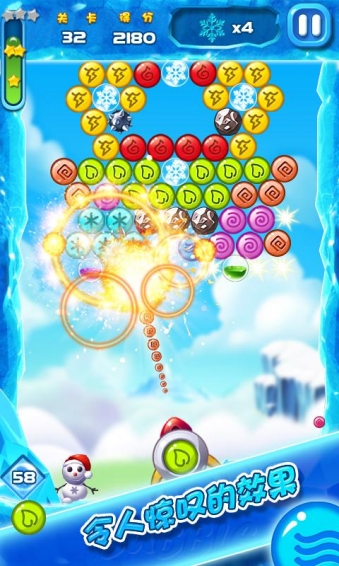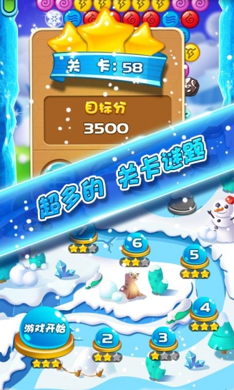 經(jīng)典的泡泡射擊玩法消除游戲-每關(guān)都有你需要通過你智慧收集雪花60個不同地圖不同玩法的關(guān)卡