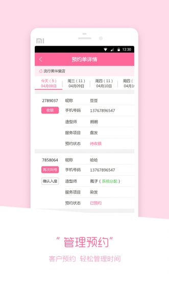 預(yù)約單,查看顧客預(yù)約,輕松支配自己的時間