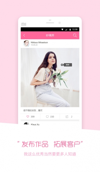妙境界隨時了解客戶對發(fā)型的喜好,最新流行趨勢,還可以上傳漂亮的發(fā)型吸引更多顧客,并可與知名造型師切磋學(xué)習(xí)技藝