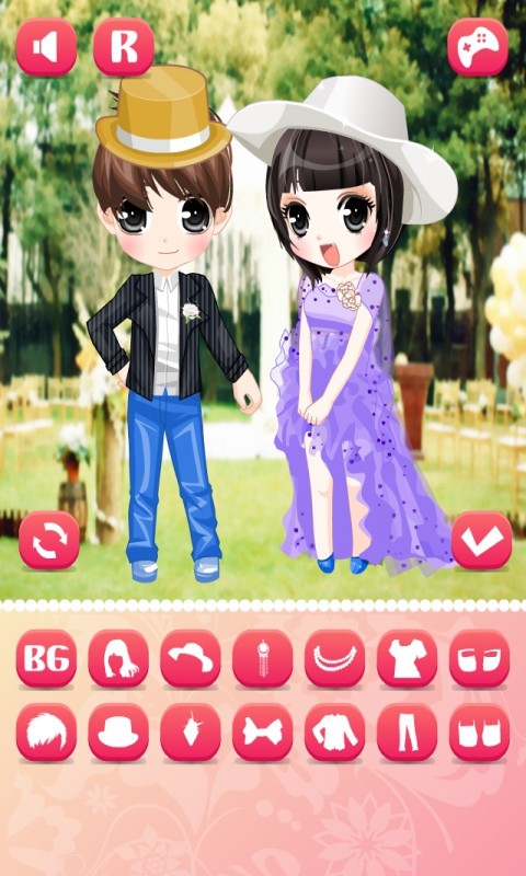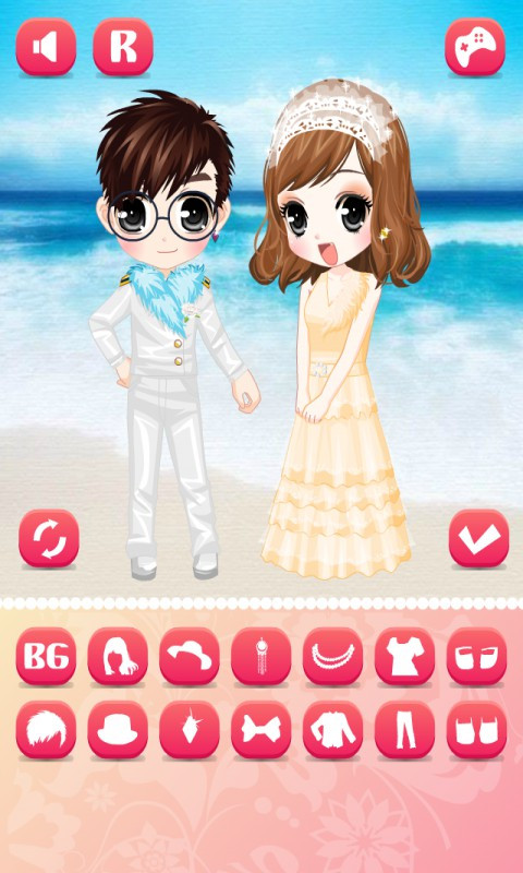 情侶換裝游戲 v5.12.6 安卓版 情侶換裝是一款非常好玩的換裝模擬類游戲,這款游戲收集了海量的裝扮元素,玩家可以根據(jù)自己的喜好對情侶人物進行自定義裝扮,并為他們獻上最完美的結(jié)婚服飾,打造最亮眼的裝扮組合。
