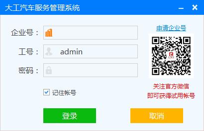 掃描軟件登陸界面右側(cè)下方的微信二維碼或關注“dagongsoft”微信公共號,關注官方微信即可獲得試用賬號。