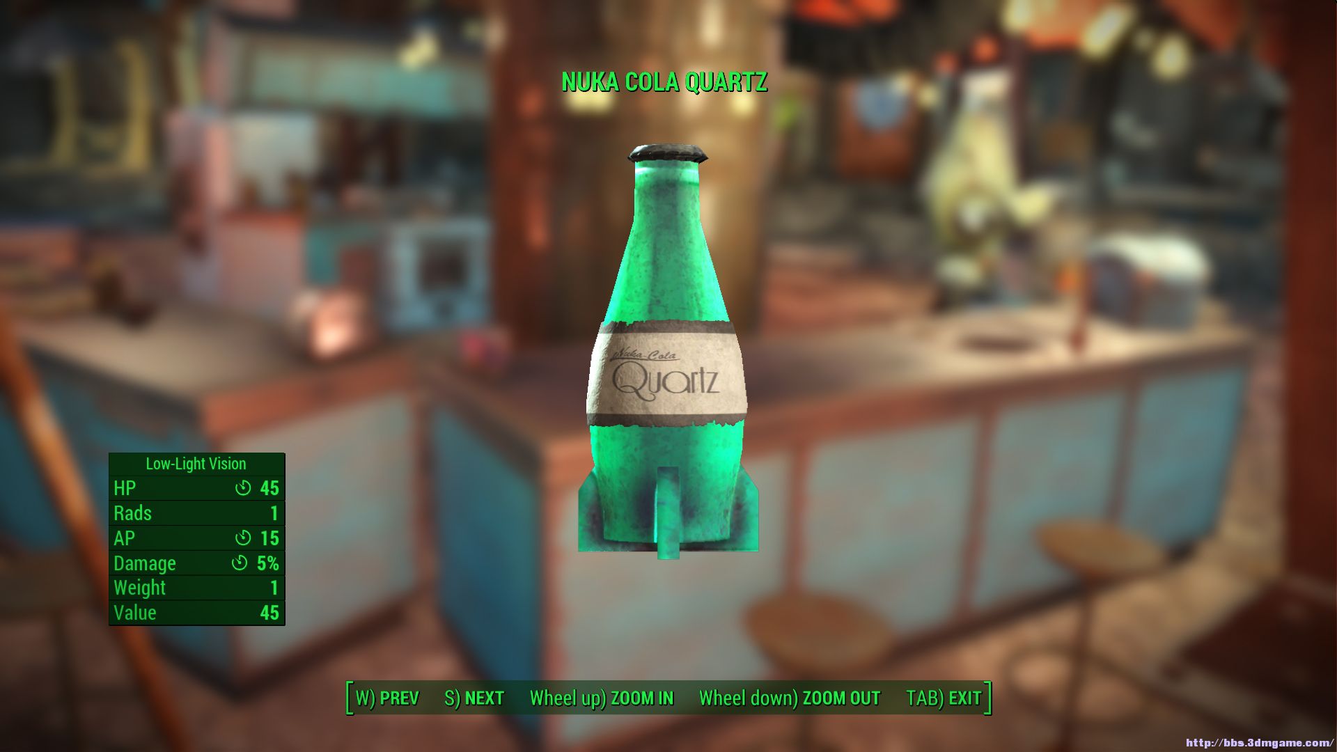 Nuka可樂(lè)石英:夜間可視+2%傷害抵抗2分鐘,+30HP+10AP+5RAD。(45瓶蓋)
