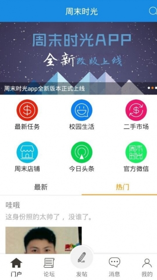 周末時(shí)光是周口第一個(gè)生活服務(wù),社交等為一體的APP平臺(tái),通過此平臺(tái),用戶可以便捷的查詢本地的各類綜合資訊,用戶還可以在這里免費(fèi)開通屬于自己的小商鋪,省錢省心又省力等基礎(chǔ)服務(wù),同時(shí)我們也可以實(shí)時(shí)推送周口本地新聞,招聘信息,資訊等消息,加強(qiáng)本地用戶的聯(lián)系與溝通。我們也會(huì)通過此平臺(tái)定期推出各種主題活動(dòng),調(diào)動(dòng)用戶的熱情和積極性,為周口本地用戶提供一個(gè)交流互動(dòng)的橋梁?! ?br />【更新日志】
