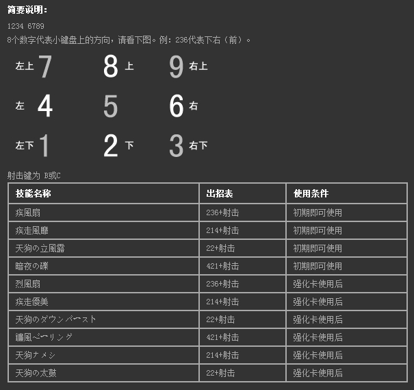 如:J2B-空中下B214-↓↙←(按↓←即可)