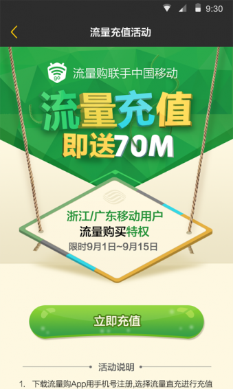 流量購,免費流量的APP。聯(lián)通、電信、移動用戶皆可使用。新用戶下載免費送流量。