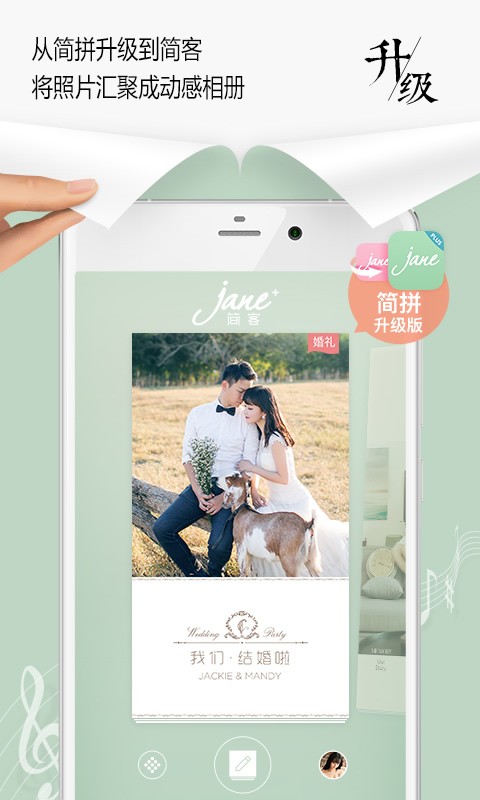 1.全新功能:從簡拼到簡客,從靜態(tài)到動態(tài),用音樂、照片、文字認(rèn)認(rèn)真真將一段特別時光編輯成小冊子2.百套模板:這是我們設(shè)計從簡拼中精選的最常用、最喜愛的100套模板,涵蓋求職、旅行、情感、聚會、服飾、文藝……每一個認(rèn)真的時刻,請記得用簡客為自己加分