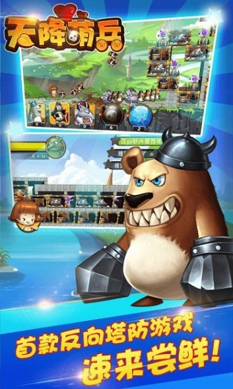 天降萌兵是一款策略塔防類游戲,玩家在游戲中將化身為萌軍的最高領袖,指揮各種各樣的戰(zhàn)士們對邪惡的怪物發(fā)起進攻,擊毀所有的炮塔、城墻,消滅大魔王守護人類的家園。