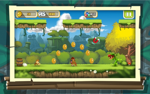 《香蕉島:波波的傳奇故事 Banana Island Bobo's Epic Tale》是一款動作橫版跑酷小游戲。這款游戲是《猴子快跑:香蕉島》的續(xù)作。游戲繼承了前作的基本玩法,畫面優(yōu)化更好,操作更加流暢。快點加入這個好玩的游戲,幫助波波收集香蕉,尋找寶石,在這個傳奇的香蕉島上。【游戲特色】