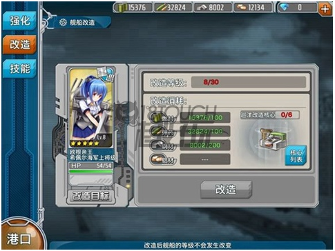 在改造中則可以對(duì)船只進(jìn)行強(qiáng)化,強(qiáng)化可以提升船只能力;部分船只可以改造,改造后強(qiáng)化滿可以覺醒獲得技能。