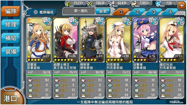 在船塢中,則是可以對(duì)船只進(jìn)行編隊(duì),對(duì)在戰(zhàn)斗中損壞的船只進(jìn)行修理,對(duì)出征歸來的船只進(jìn)行補(bǔ)給以及給艦船們攜帶裝備。