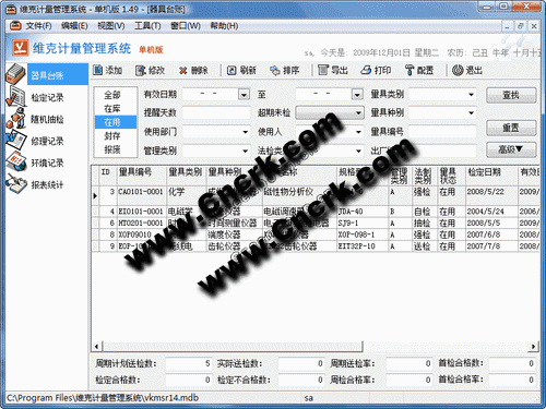維克計(jì)量管理軟件 V1.49 簡體中文綠色特別版 為了協(xié)助企業(yè)做好計(jì)量檢測(cè)體系工作,維克軟件投入研發(fā)一整套計(jì)量管理軟件, 維克計(jì)量管理軟件主要由系統(tǒng)管理、權(quán)限管理、量具臺(tái)帳、量具狀態(tài)、檢定管理、抽樣管理、統(tǒng)計(jì)分析、計(jì)量人員管理、報(bào)警系統(tǒng)等模塊構(gòu)成。