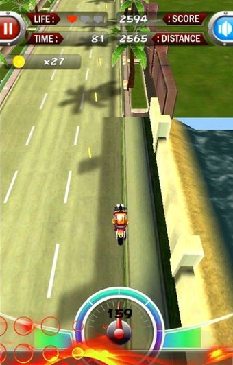 《渦輪摩托3D Turbo Moto 3D》是一款3D效果的摩托車游戲,游戲駕駛摩托在道路上收集金幣,還要躲避警察,游戲非常耐玩,金幣還可以解鎖更多的摩托車?!稖u輪摩托3D Turbo Moto 3D》是一款全新3D縱版競速游戲,玩家控制摩托車疾行在城市公路中,在努力收集道路上金幣的同時,還要小心身后警察的圍追堵截,努力的讓自己走的更遠,得到更多金錢,去解鎖更給力的坐騎吧!