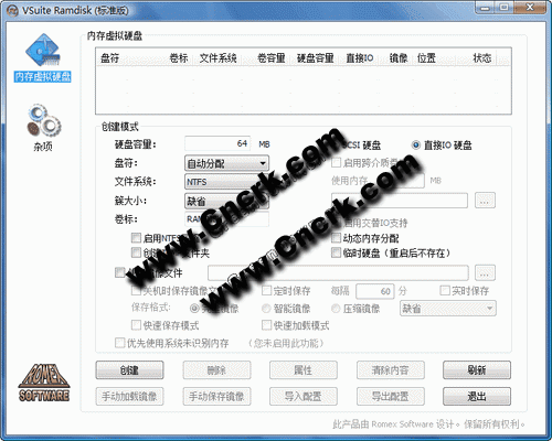虛擬內(nèi)存硬盤(標(biāo)準(zhǔn)版) V4.0 簡(jiǎn)體中文官方安裝版 VSuiteRamdisk是RomexSoftware開發(fā)的一款可以利用內(nèi)存虛擬一個(gè)完全等效的物理硬盤??梢詷O大的提高讀寫文件的速度,并減少實(shí)際硬盤的訪問,從而延長(zhǎng)硬盤壽命。它還可以識(shí)別操作系統(tǒng)識(shí)別不到的內(nèi)存,通過虛擬成硬盤的方式加以充分利用。