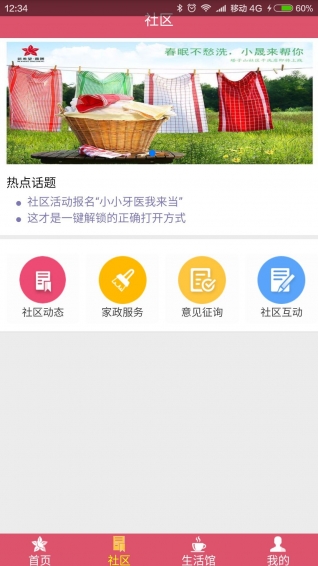 新健康生活app致力于讓更多的人可以享受到高質(zhì)量的生活而打造的一款生活服務(wù)類(lèi)手機(jī)軟件。功能涵蓋了在線查詢(xún)繳費(fèi)、在線報(bào)事報(bào)修、智能門(mén)禁、社區(qū)互動(dòng)、干洗預(yù)約上門(mén)服務(wù)、生活采購(gòu)上門(mén)服務(wù)等豐富多彩的社區(qū)服務(wù),讓你隨時(shí)隨地都能感受到便捷的存在,新健康生活就是那么簡(jiǎn)單。