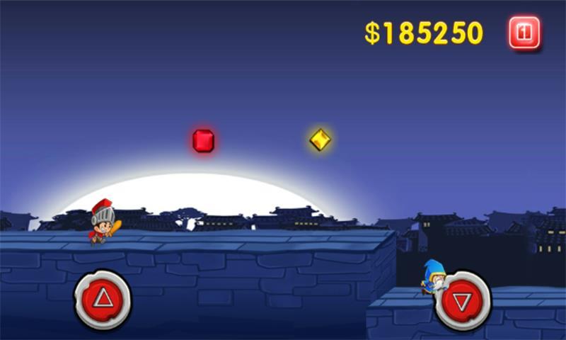 寶石的追隨者是一款簡(jiǎn)單有趣的休閑益智類手機(jī)游戲。玩家只需要通過(guò)紅色按鈕控制追隨者的跳躍和蹲下,收集寶石,并且還要注意躲避野生草泥馬和飛彈,方能順利的完成每一關(guān)的關(guān)卡任務(wù)。