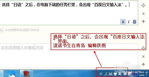 選擇“日語”之后,在電腦下端的任務欄里,會出現(xiàn)“百度日文輸入法”。