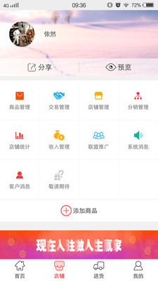【零負(fù)擔(dān)開店】零成本開店,輕松實現(xiàn)店鋪管理,商品管理,訂單管理。【無限級分銷】分銷管理支持兩級內(nèi)分銷商統(tǒng)計。