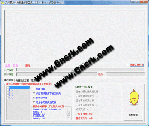 功能: 批量修復被病毒篡改的快捷方式 批量修改文件或文件夾名稱 批量修改文件或文件夾屬性 兼?zhèn)湮募蛭募A搜索