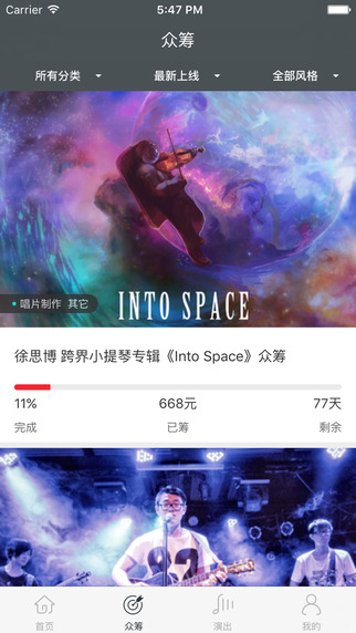 1、發(fā)現(xiàn)音樂(lè)眾籌項(xiàng)目,支持夢(mèng)想你可以隨時(shí)隨地發(fā)現(xiàn)各種與音樂(lè)相關(guān)有趣的創(chuàng)意想法,包括音樂(lè)硬件、唱片制作、現(xiàn)場(chǎng)演出、音樂(lè)周邊、音樂(lè)出版、音樂(lè)視頻等7大類。挑選自己喜歡感興趣的眾籌項(xiàng)目,去支持發(fā)起人完成夢(mèng)想吧!
