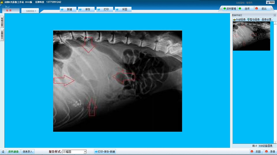 4. 系統(tǒng)專為接收獸用X光機(jī)下的圖像,實(shí)現(xiàn)圖像顯示、采集、信息管理,軟件設(shè)計(jì)靈活,應(yīng)用廣泛