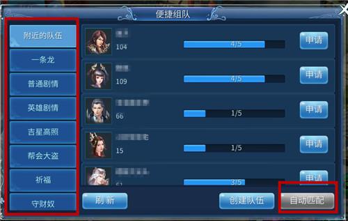 點擊【隊伍】,再點擊一下,會彈出如下圖的列表,快速選擇自己所需要進行的任務活動,再點擊【自動匹配】等待成功匹配便可以進行任務。