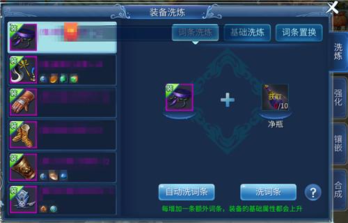 1.詞條洗練:把裝備屬性詞條洗掉換來新的詞條屬性。需要物品:凈瓶