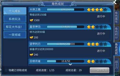 成就系統(tǒng)就是當你某一項東西達到要求后可以獲得如元寶獎勵、稱號獎勵。
