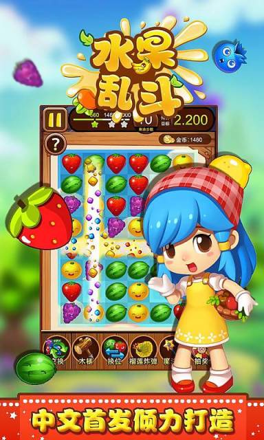 水果亂斗是一款休閑好玩的消除類游戲。該游戲玩法非常簡(jiǎn)單,玩家需要用手指將相鄰的相同顏色水果相連接,從而一次性消除,消除的個(gè)數(shù)越多,分?jǐn)?shù)也就越高。