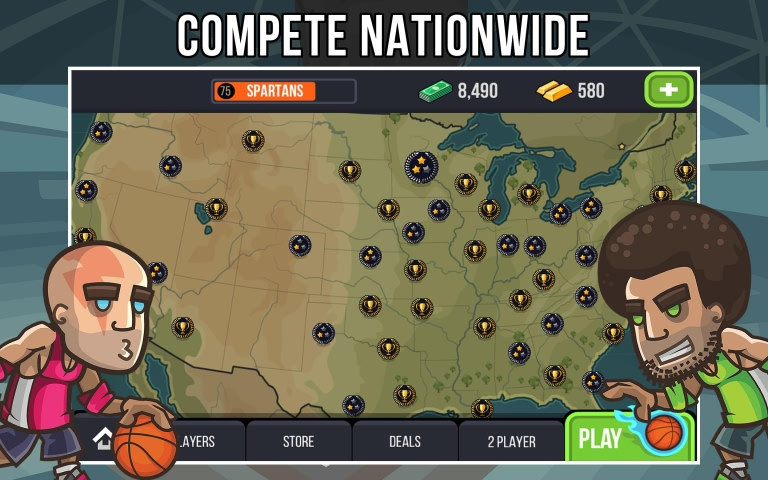 籃球戰(zhàn)役是一款籃球競(jìng)技類游戲,游戲的玩法采用一對(duì)一斗牛的形式,玩家在游戲中將與電腦AI進(jìn)行對(duì)決,你要操作人物的奔跑跳躍,避開對(duì)手的阻攔,進(jìn)入內(nèi)場(chǎng)將球投入籃筐中。