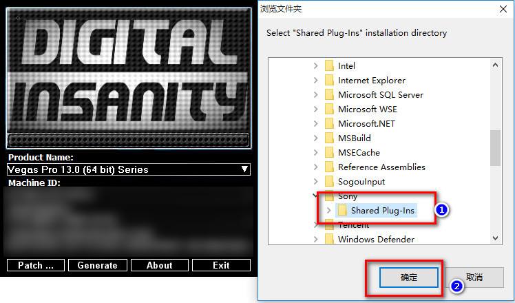 12.運(yùn)行后軟件會(huì)生產(chǎn)序列號,然后在注冊機(jī)上面點(diǎn)擊”Patch“。會(huì)彈出加載框,加載軟件安裝路徑下的Vegas Pro 13.0.例如小編路徑為C:\Program Files\Sony\Vegas Pro 13.0.如下圖