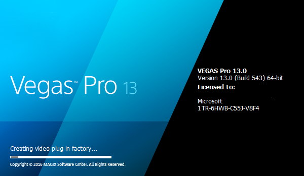 第八步:至此Sony Vegas Pro 13主程序激活,并開始加載主程序界面,在該界面我們可以看到我們的激活信息哦,如下圖: