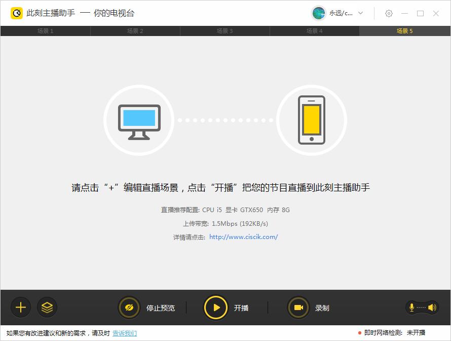 場景:相當(dāng)于PS的作圖,場景是主圖,直播源是圖層。你可以多設(shè)置幾種不同的場景畫面,在直播中自由切換,