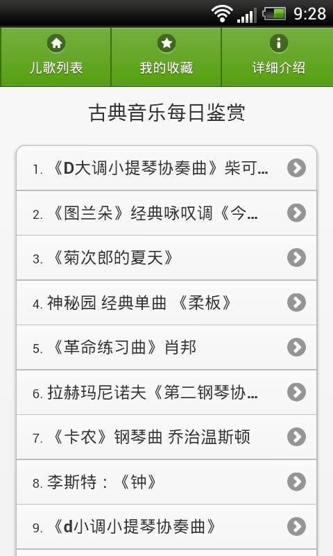 本軟件精選西方古典音樂的主要作品,您可以直接在手機(jī)上隨時(shí)聆聽我們精選的古典音樂,同時(shí)還可以通過作品、作者和演奏者的介紹,幫助您一步一步的邁入古典音樂的殿堂。歡迎每一個(gè)喜歡古典音樂的網(wǎng)友。不管你是喜歡巴洛克、浪漫主義還是現(xiàn)代音樂,也不管你是專業(yè)音樂家還是未入門的聽眾,都會(huì)在這里找到各自的知音。【更新日志】